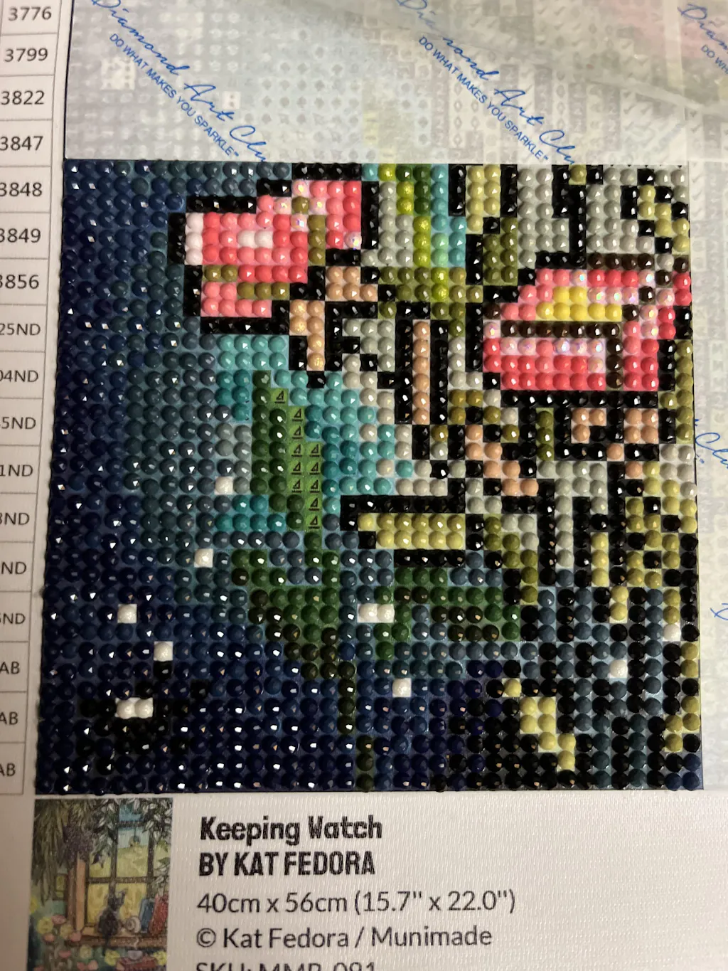 The colors and artwork were great, and so was the rendering. The use of crystals in particular was absolutely gorgeous and perfect for the image. Working on this kit was a joy! (I did remove a couple of the butterflies, but that was just a matter of very idiosyncratic personal preference. They were absolutely fine as charted.)