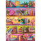 A bright and colorful bookshelf bursts with beloved books, blooming flowers, and all sorts of adorable treasures tucked between the shelves. Every little detail feels like a happy surprise, making this a cheerful scene any book lover would adore.