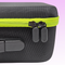 - Hard shell zippered case with a fabric covering